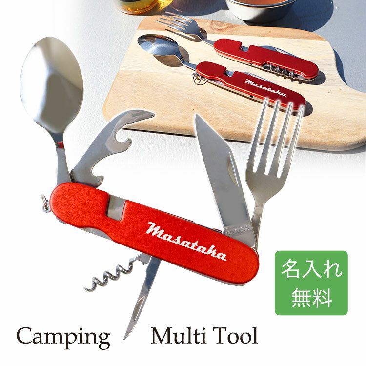 キャンプ好きの方へのプレゼントにおすすめ。 アウトドア 多機能 カトラリー セット 【10%OFF】キャンプ 多機能 名入れ 【キャンピング マルチツール】 名前入り アウトドア 防災グッズ 男性 女性 プレゼント 父の日 母の日 30 40 50 60 歳 70代 ソロキャンプ キャンパー 春 秋 冬 夏ギフト